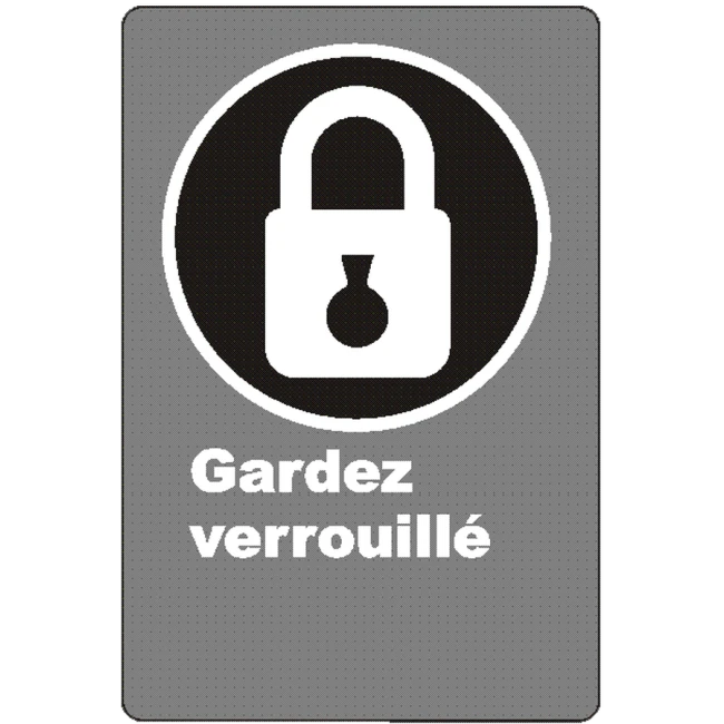 Posters based on the CSAZ31-96 (R2006) symbols expresing a general message that states which service is available or regulation is in effect. The "Gardez verrouillé" sign displays a full black circle which indicates an obligation or a requirement.
