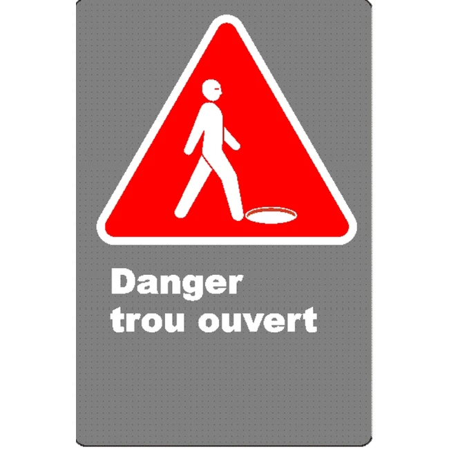 Prévenez les accidents et sécurisez vos zones de travail avec l’affiche CDN « Danger trou ouvert » en français. Conforme aux normes canadiennes de signalisation, ce panneau d’avertissement est indispensable pour identifier les zones présentant un risque de chute ou d’ouverture non sécurisée. Disponible en plusieurs langues format et matériaux, comme le vinyle autocollant, l'aluminium et le plastique rigide à choisir dans le menu déroulant.
