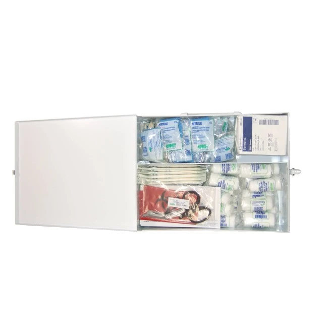 Cette trousse de premiers soins professionnelle se distingue par son contenu conforme aux exigences fédérales et sa capacité à couvrir les besoins d’un groupe de 20 employés ou plus. Elle inclut un livret d’enregistrement des accidents, des sacs pour déchets infectieux, des rouleaux de gaze stériles et des bandages triangulaires. Pour une conformité complète, il est recommandé d’ajouter une civière, des couvertures de sauvetage et un ensemble d’attelles, disponibles séparément.