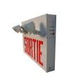Simple or double-faced "Exit" light allows for wall or ceiling installation. The "Exit" sign is lit by a white LED light bar. The unit features an accumulator sealed with lead dioxide and a dust-proof relay. No maintenance required. 5-year lifetime.