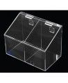 Clear acrylic hairnet dispenser with double vertical bins and slanted hinged lid. Sold individually.