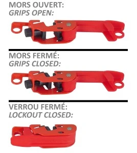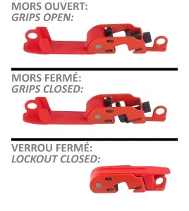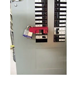 This lockout can be used to secure a circuit breaker toggle during a lockout-tagout (LOTO) procedure. Simply place the open lockout over the breaker toggle, manually tighten the grips, then close the lockout handle and secure with a padlock. This lockout can be used on a single and double breakers.