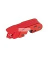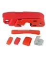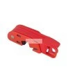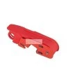 This lockout does not require any tools. Made of steel, with red enamel powder coating.