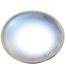 This convex mirror is made of lightweight, flexible and durable acrylic. The back of the mirror is protected with a beige plastic frame. The mirror may be installed on a ceiling, a wall, a column, a fence, a post, etc. Once installed, the mirror can be easily tilted at the optimal viewing angle.
