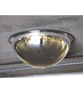 Full dome hemispheric convex mirror, for 360-degree view in a 4-way intersection.