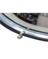 The mirror features a flange for ceiling mounting. The flange has four pre-drilled mounting holes reinforced with metal brackets.