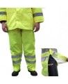 • High visibility fluorescent yellow rain pants with silver reflective stripes.