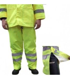 This waterproof polyester suit is made of 200 denier yarns. The interior is coated with PVC to make it waterproof. The manufacturer is silent on its waterproofing rating. All seams are taped. This lightweight, flexible coat is ideal for casual use. It is recommended for workers who are not surrounded by vehicles.