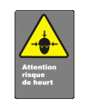 Affiche « Attention risque de heurt » de langue française en formats variés et en plusieurs matériaux : Plastique, aluminium ou vinyle autocollant. Des affiches de langue anglaise et des affiches bilingues sont aussi offertes lorsque la réglementation le permet. Il existe des affiches à deux faces (en V), des affiches perpendiculaires au mur (en L) ; elles sont bien sûr en plastique ou en aluminium seulement. Vous avez l’option d’ajouter un laminage anti-UV pour une protection des couleurs; pour une meilleure visibilité, vous pouvez ajouter une option rétro-réfléchissante ou une option photoluminescente. En ce qui concerne les formats, le 6”x9” ainsi que le 8”x12” sont les plus populaires, mais tout autre format est possible si une commande spéciale est passée. Contactez Sylprotec pour des affiches dans une autre langue que le français, pour une affiche sur mesure ou une affiche avec l’une des options énumérées plus haut.