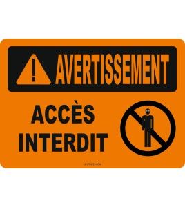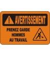 Les affiches OSHA couvrent une vaste sélection de situations grâce aux différents entêtes, pictogrammes et légendes qui permettent une panoplie de combinaisons pour tous les domaines d’activité. Les affiches en conformité avec les normes de l’OSHA présentant l’entête « Avertissement » servent à informer tout public d’une situation qui peut s’avérer dangereuse. L’affiche « Avertissement Prenez garde Hommes au travail » présente un rectangle noir au haut sur fond orange et sert à indiquer les situations potentiellement dangereuses, donc où il y a risque de blessures graves ou mortelles. Notez que les affiches « Avertissement Prenez garde Hommes au travail » ne devraient jamais servir à afficher des dommages matériels à moins qu’il y ait aussi danger corporel.