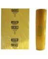 Normalement, les débris d'amiante doivent être enveloppés dans deux sacs afin d'obtenir l'épaisseur réglementaire de 6 mils autour des déchets d'amiante. Le deuxième sac est habituellement transparent et devrait être enfilé avant la sortie finale des déchets. Le sac transparent permet de distinguer facilement que deux sacs ont été utilisés et n'entrave pas la visibilité de l'étiquette imprimée sur le sac jaune. 33 po x 50 po
