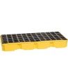 Grâce à sa capacité de rétention de 24 gallons, cette plateforme étanche permet de contenir les fuites et les renversements accidentels afin d'éviter de contaminer les environs ou de créer un risque de glissement. Le dessus de la plateforme est muni d'une grille amovible d'une épaisseur de 2 1/2 po (6,3 cm) pouvant tenir 2 barils. Plusieurs plateformes peuvent être reliées ensemble pour former une superficie d'entreposage plus grande ou d'une forme adaptée à la configuration des lieux.