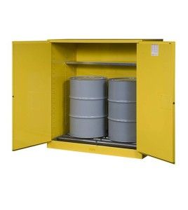 Cette armoire de stockage (cabinet d’entreposage) peut entreposer à la verticale un maximum de deux barils de 30 ou 50 gallons US (110 ou 200 L) en toute sécurité. L’armoire est construite selon les mêmes standards que les armoires pour liquides inflammables de Justrite.