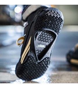 La conception « pied entier » est faite d’un matériau résistant à l’huile et présente un motif de semelle unique en son genre pour évacuer les liquides tout en augmentant le contact du pied avec le sol.