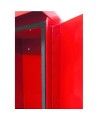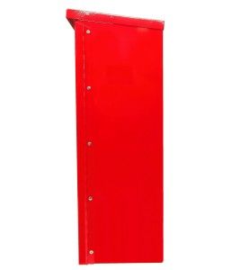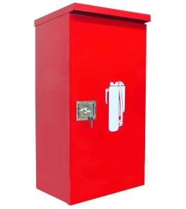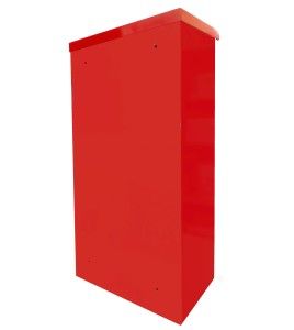 Fabriqué en acier galvanisé de calibre 16, avec revêtement en acrylique rouge pour résister aux intempéries. La porte pleine a une charnière piano en acier inoxydable et un loquet plaqué zinc. Le cabinet est fourni avec 2 clés. Extincteur non inclus.