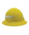 Bandes adhésives rétroréfléchissantes argentées REFLEXITE 360 degrés de forme recourbée qui s’adaptent sur un casque de sécurité. Les bandes rétroréfléchissantes fixées sur le casque de construction sont conformes à la norme ANSI/ ISEA 107-2004 pour la protection de la tête.