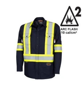 2. Catégorie 2 (ARC 2) : Ces vêtements ont un indice d’arc minimum de 8 cal/cm². Ils sont généralement suffisants pour des installations avec un risque inférieur à 8 cal/cm². Si le risque est supérieur à 8 cal/cm², il est possible d’augmenter la distance de travail à l’arc (jusqu’à l’obtention d’une estimation de 8 cal/cm² ou inférieure) ou d’ajouter des couches supplémentaires de vêtements jusqu’à l’atteinte du bon niveau de protection face à l’énergie incidente.