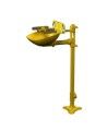 Douche oculaire et faciale à piédestal Halo de marque Bradley (S19214FW), avec cuvette en plastique jaune.
