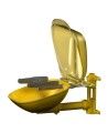 Douche oculaire et facial Halo de marque Bradley (S19224PDCFW), avec cuvette en plastique jaune et couvercle pare-poussière à charnière en plastique transparent. Installation murale.