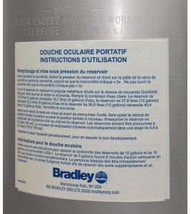 Douche oculaire portative par Bradley (S19-690LHS) avec réservoir sous pression de 10 gallons (37,9 L).