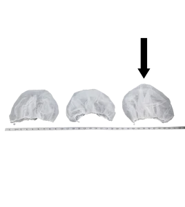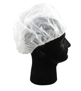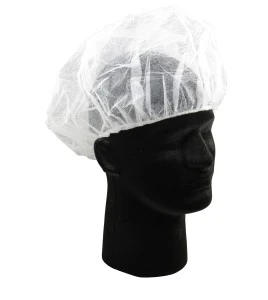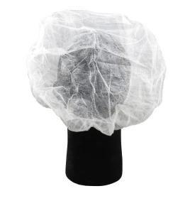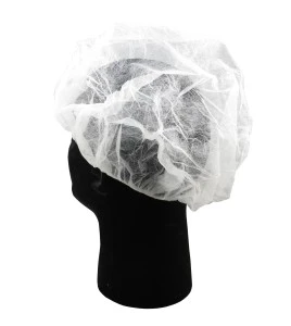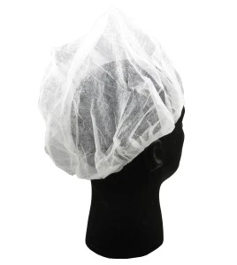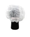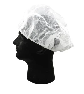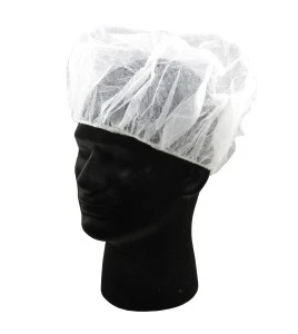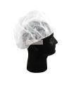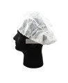 Bonnet à cheveux blanc fait de polypropylène non-tissé, grandeur 24 po, vendus en paquet de 100, 10 paquets par caisse. Utilisé dans le domaine de l'alimentation ou pharmaceutique. Produit jetable après usage.