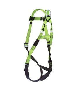 Ce harnais de sécurité est fabriqué avec des sangles de polyester. Les sangles de polyester offrent une meilleure résistance aux produits chimiques acides. Les sangles de la poitrine et des jambes sont réunies par des boucles entrelacées. Les étiquettes d’identification et de certification du produit sont cousues sur la sangle située à l’arrière du côté gauche du harnais de sécurité.