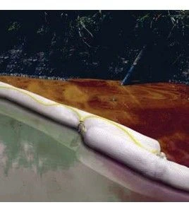 Absorbant flottant formant un barrage pour hydrocarbures, 5 po X 10 pi, 4 boudins par boite. L'ensemble des boudins absorbe 118 Litres (26 Us Gallons) d'huile.