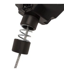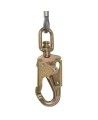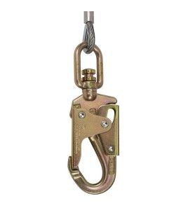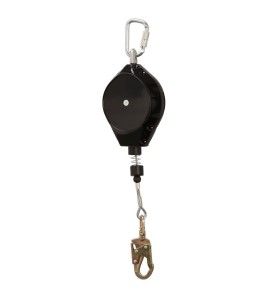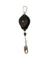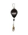Cette ligne de vie autorétractable est munie de deux mousquetons, soit un mousqueton pivotant d’une ouverture standard de 7/8 po (22.22 mm) et un mousqueton semi-automatique (à bague rotative) d’une ouverture de ¾ po (19 mm). Les mousquetons sont autoverrouillant et se déverrouillent avec une double action.