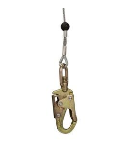 Cette ligne de vie autorétractable est munie d'un mousqueton en acier, soit un mousqueton pivotant d’une ouverture standard de 7/8 po (22.22 mm). Le mousqueton est autoverrouillant et se déverrouille avec une double action.