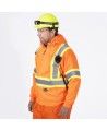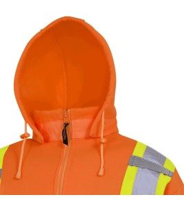 Cette veste haute visibilité de Pioneer® est confectionné dans du molleton de polyester de 10,5 oz (360 GSM) de qualité supérieure. Elle est conforme à la norme CSA Z96-15 classe 2 niveau 2 (devient classe 3 lorsqu’il est porté avec un pantalon haute visibilité doté de bandes réfléchissantes sur les jambes). De plus, elle est dotée de bande réfléchissante StarTech® à double couture, d’une capuche amovible à cordon, les poignets et le bas de la veste sont muni d’un élastique pour d’avantage de confort. Comprenant deux poches coupées à l'avant d’une fermeture à glissière complète sur le devant et de deux sangles de clip radio.